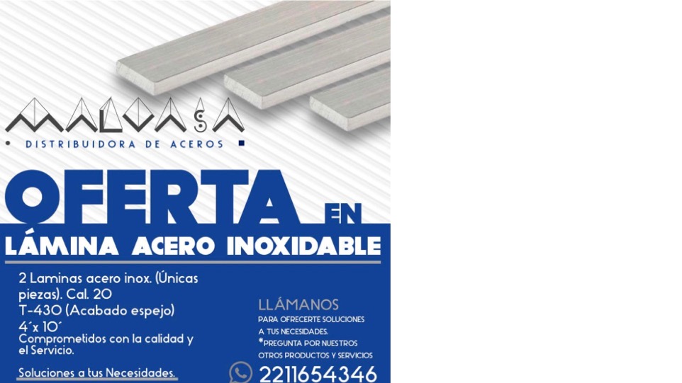 En el núcleo de cada proyecto ambicioso reside una promesa: la de la fuerza, la durabilidad y la excelencia. En MALVASA , sabemos que usted no solo busca materiales; busca la tranquilidad de construir un legado que resistirá la prueba del tiempo. Nuestra especialización en la comercialización y distribución de acero inoxidable, aluminio y aceros especiales le ofrece la certeza de que la columna vertebral de su obra es, sencillamente, inquebrantable. Olvídese del dolor de la incertidumbre: al elegir nuestras placas, mallas, láminas, barras sólidas, tornillería industrial y válvulas de la más alta calidad, usted está invirtiendo en la confianza y el estatus de ser un líder que jamás compromete la seguridad ni la visión a largo plazo de su diseño.
